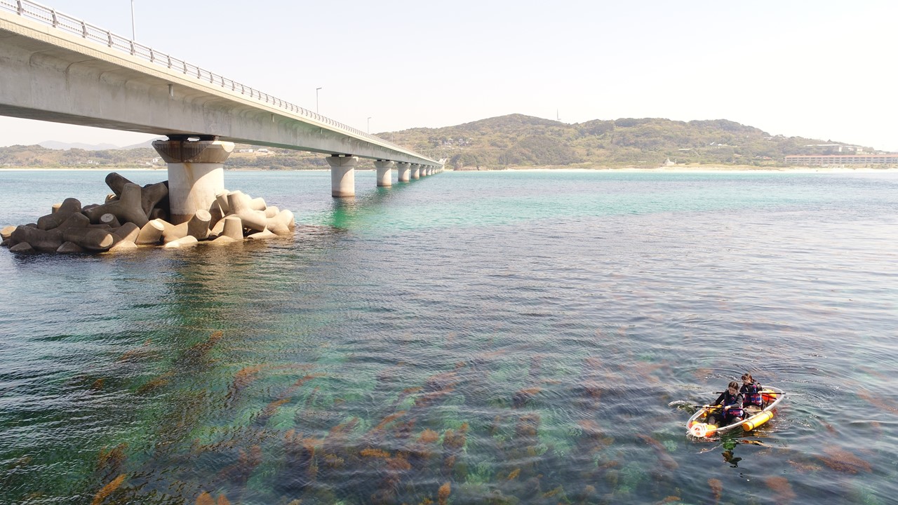3歳から参加ok 透明で海中を覗けるクリアカヤック 北谷町漁業協同組合 総合案内所